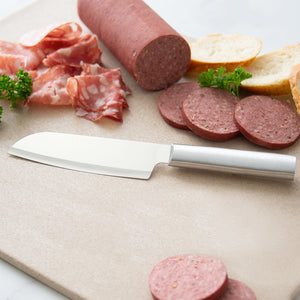 This knife cuts, slices, and dices zucchini, turnips, and oranges, but it won’t let anything stand in its way. Perfectly suited for serious cooking tasks, it’s strong enough for cutting through meat, yet gentle enough to cut crackers without crumbling them.