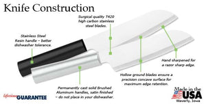 Every serrated Rada knife and “cutting utensil” is made using the BEST type of serration for its intended purpose. Non-serrated blades are hollow ground on both sides for ultimate cutting and slicing.