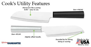 The Cook’s Utility isn’t big, but it is mighty. Considered a medium-sized knife, the Cook’s Utility handles like a paring knife but is as versatile as one of our larger knives, like the French Chef. This is a favorite of people everywhere, whether they’re a beginner or well-seasoned chef.
