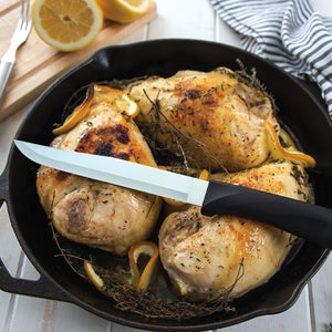 For slicing roast beef, poultry, or ham, this knife is a winner. A great choice for big, juicy fruits and vegetables, too. Watermelon? Cabbage? Yes and yes. The ergonomic handle of the Anthem Slicer is comfortable to use and provides a good grip.
