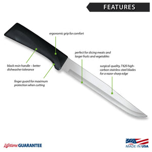 The razor-sharp edge of Rada’s Anthem Slicer glides through just about anything. Easily slice meats, veggies, and fruits. The comfortable handle provides effortless control.