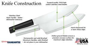 Every serrated Rada knife and “cutting utensil” is made using the BEST type of serration for its intended purpose. Non-serrated blades are hollow ground on both sides for ultimate cutting and slicing.