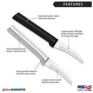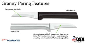 The Granny Paring Knife is the smallest of all our knives and offers finesse when prepping small foods you hold in your hand. Its reverse-curved blade cuts and slices perfectly, whether in a motion toward or away from you. From the Granny Paring to our Super Parer (our largest paring knife) and everything in between, Rada has something to suit every kitchen task.