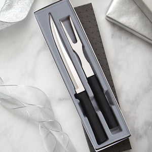 Included in this set are the Rada Carver/Boner and Carving Fork. Both pieces are available in your choice of silver or black handles.