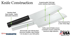 Every serrated Rada knife and “cutting utensil” is made using the BEST type of serration for its intended purpose. Non-serrated blades are hollow ground on both sides for ultimate cutting and slicing.