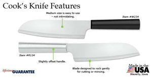 The Cook’s Knife is one of those tools you love having in your kitchen. Its versatility makes it fun to use, while its size (larger than the Cook’s Utility) is easy to control. Not too big, not too small, but just right (and totally unpretentious).