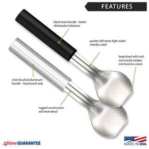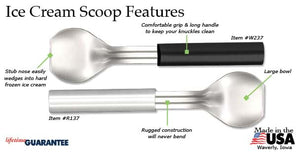 The stub nose design of our Ice Cream Scoop digs down into the hardest ice cream and scoops up a big serving of your favorite icy treat.