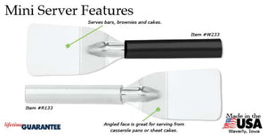 Our Mini Server features an angled face, making it perfectly designed for serving directly from a pan. Its small size makes portion control easy when rich and decadent foods are on the menu.
