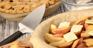 Serrated Pie ServerThe Serrated Pie Server (4⅛ x 2⅜" face, 9¼" overall) is the best way to cut and serve any pie, hot or cold. The serrated edge cuts through crust and filling and the flat stainless steel surface serves up a delicious slice.