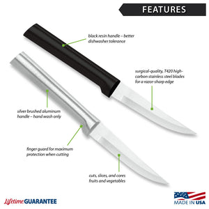 All non-serrated Rada knives can be easily resharpened when needed, to achieve a like-new blade again and again.