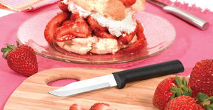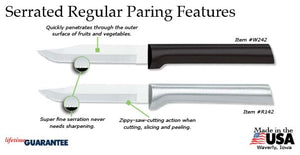 The Serrated Regular Paring Knife is perfectly sized for cutting fruits and vegetables. Similar to our non-serrated Regular Paring, but ideal for people who prefer the sawing action of a serrated blade.